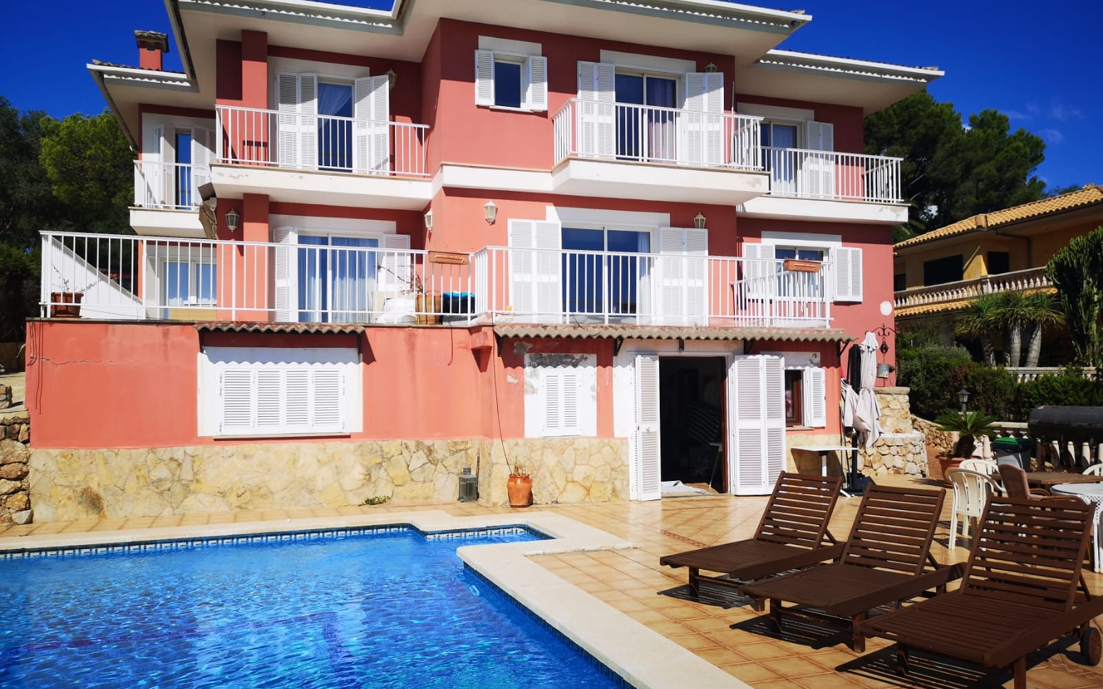 Spacious Villa on 3 floors with 5 large double bedrooms, each with its ensuite bathroom. Two living areas, bodega, swimming pool.