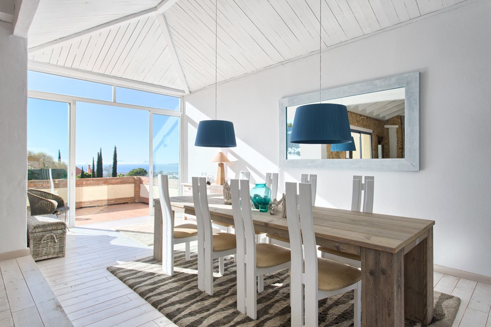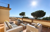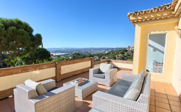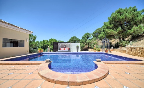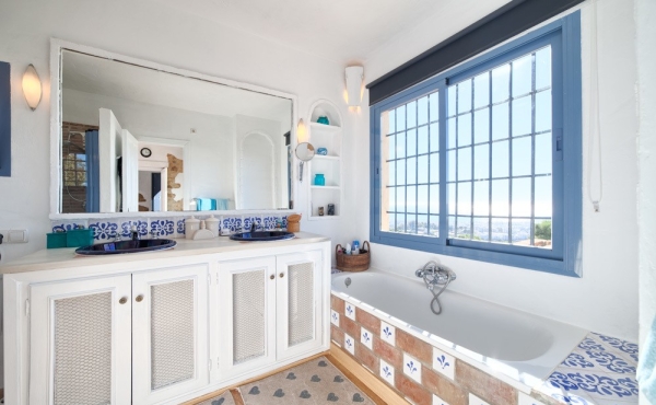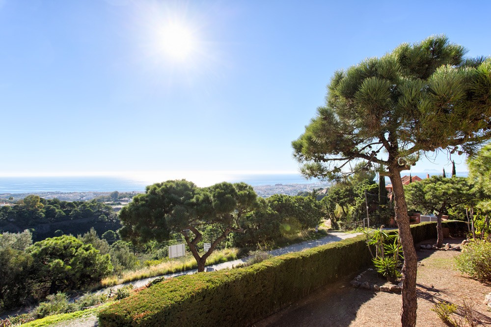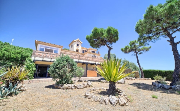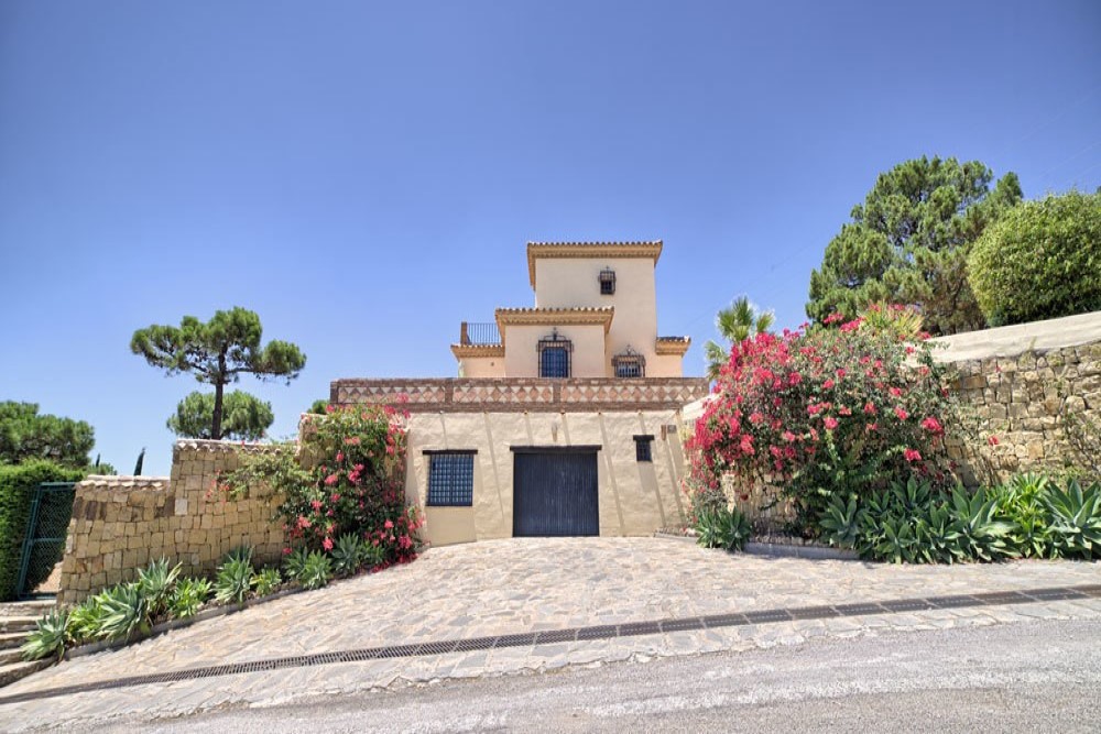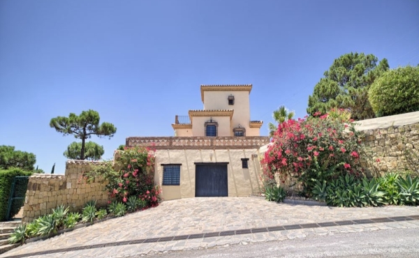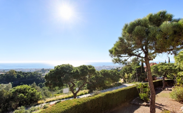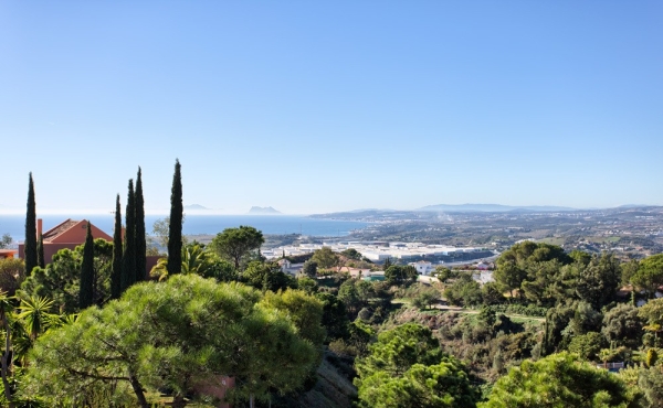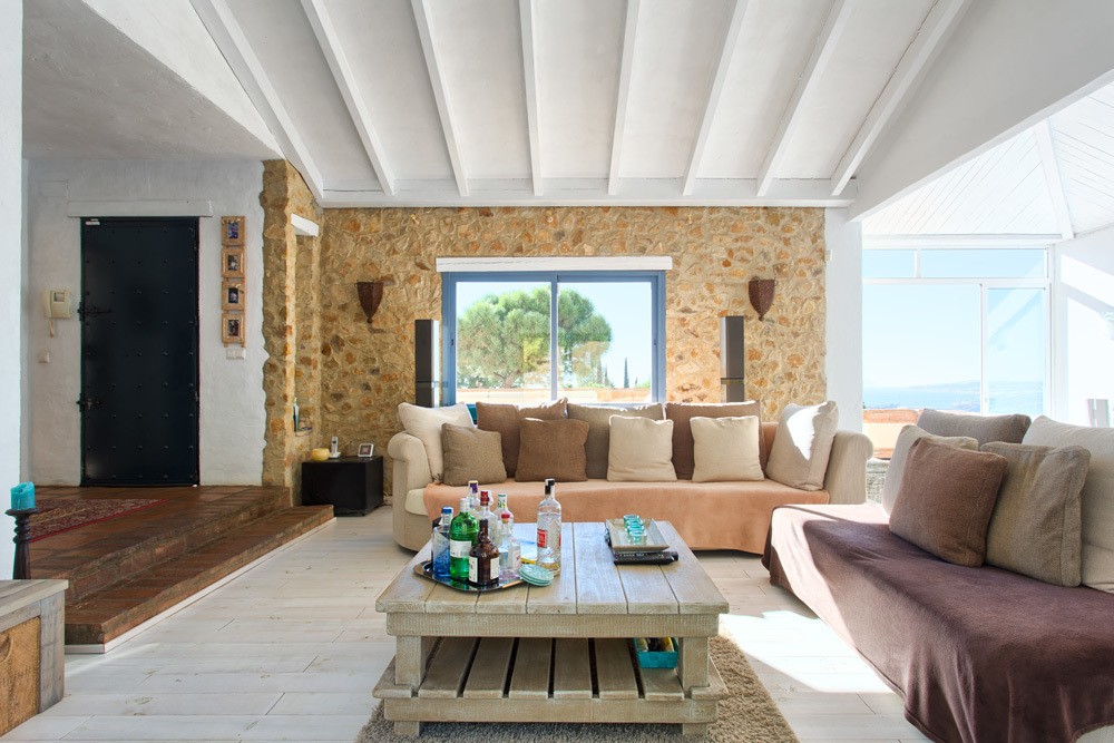The villa is located in Puerta de los Reales, a peaceful area of Estepona high up the mountain yet just 3 km from the town giving you easy access to amenities, restaurants and beaches within minutes. Its' elevated position of 166 meters above sea level offers breathtakingly beautiful panoramic 180-degree views over Estepona and to the sea which can be enjoyed from both inside and outside on the large south facing terrace. Built in a rustic style with modern interiors the property offers plenty of space over three levels:
