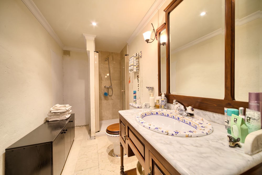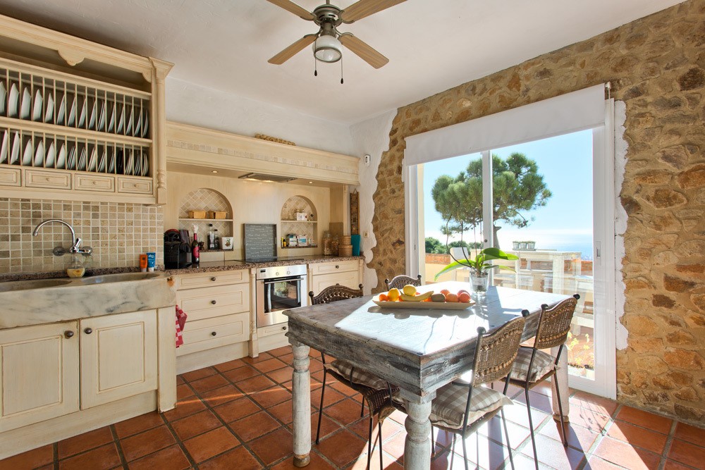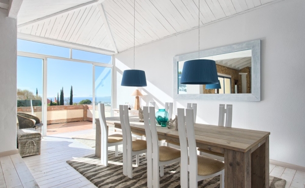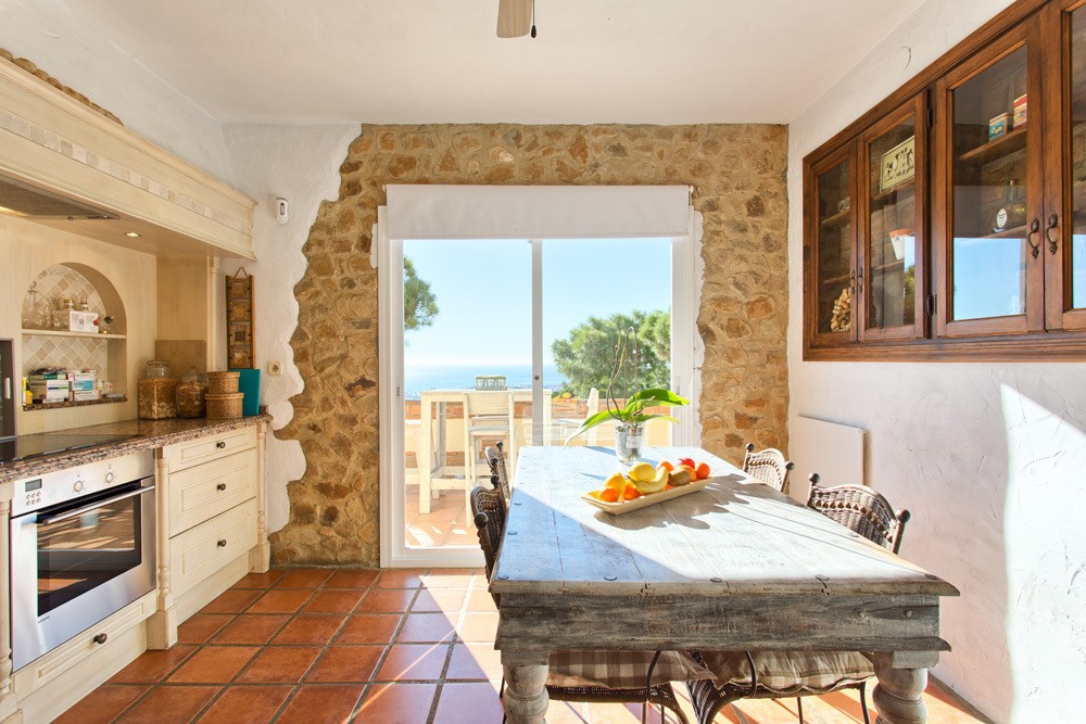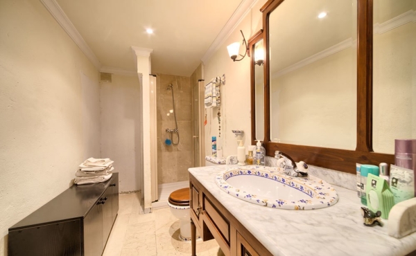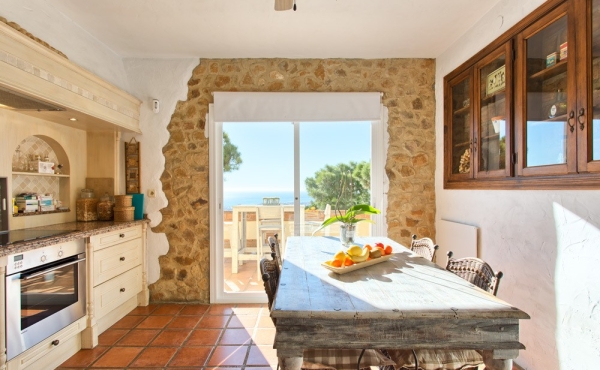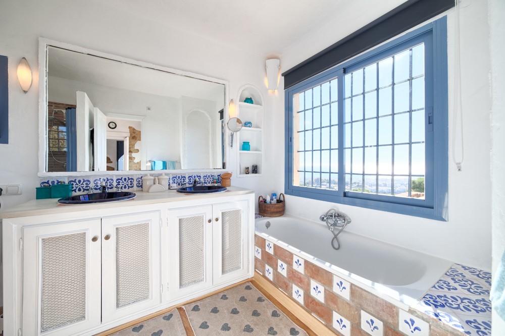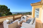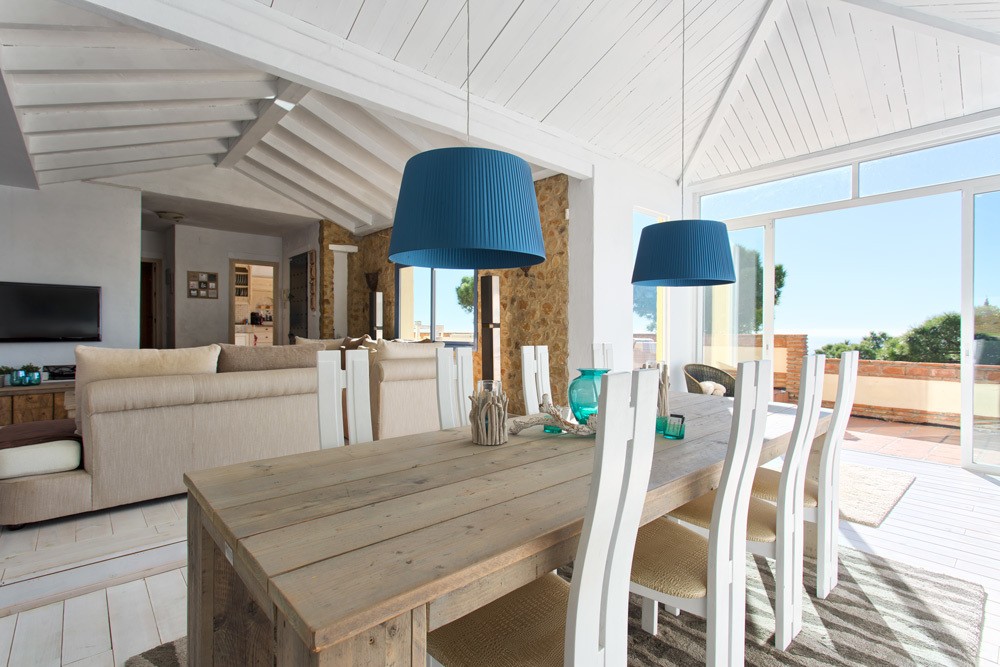 The villa is located in Puerta de los Reales, a peaceful area of Estepona high up the mountain yet just 3 km from the town giving you easy access to amenities, restaurants and beaches within minutes. Its' elevated position of 166 meters above sea level offers breathtakingly beautiful panoramic 180-degree views over Estepona and to the sea which can be enjoyed from both inside and outside on the large south facing terrace. Built in a rustic style with modern interiors the property offers plenty of space over three levels: