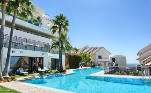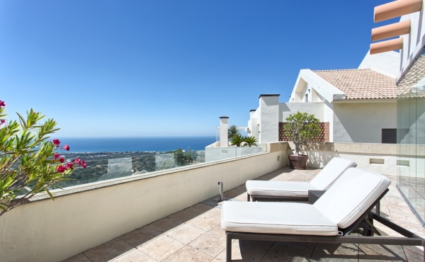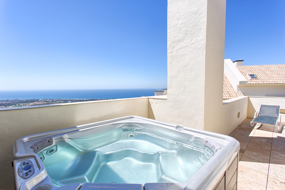 Located in Altos de Los Monteros, the Los Monteros Hill Club is one of the most sought-after residential complexes in Marbella. The gated complex consists of luxurious apartments and penthouses with generous terraces providing fantastic panoramic views, 24-hour security, private underground garage parking and a beautiful large pool area with spa and fitness. This duplex apartment is one of the larger properties on this exclusive development offering luxury living in contemporary, air-conditioned interiors that are distributed over two floors: