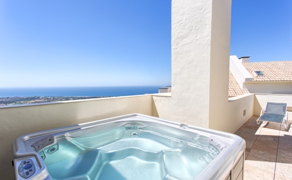 Upper Floor - Three double bedrooms, two bathrooms with hi-quality fittings and another large terrace with a private Jacuzzi and of course the same stunning panoramic views.
