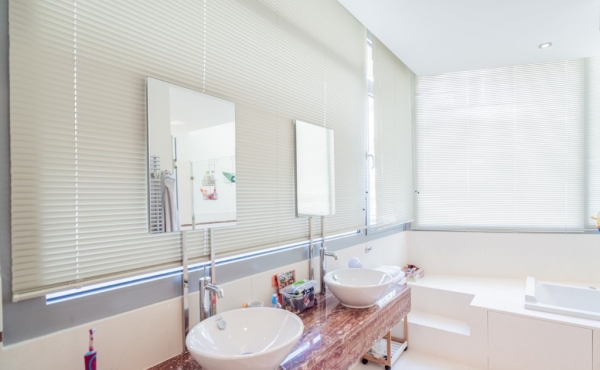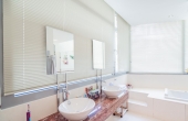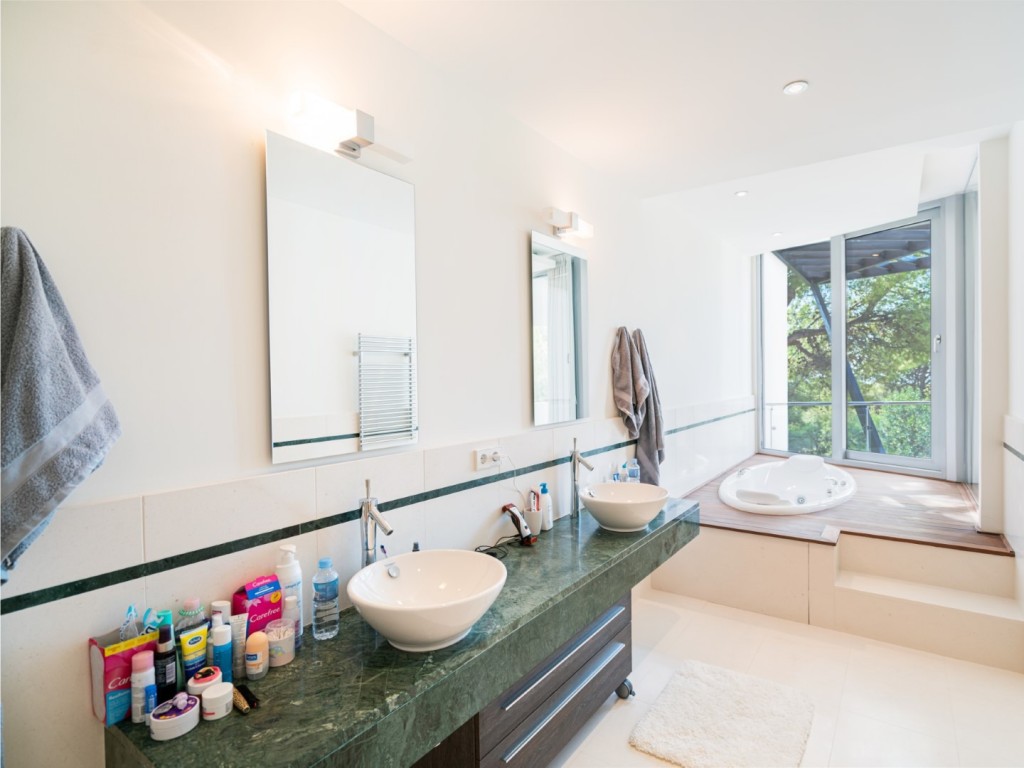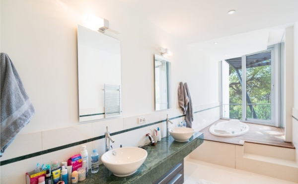 2 bedrooms and 2 luxury bathrooms - dark marble and wood, modern basins, faucets and fixtures.