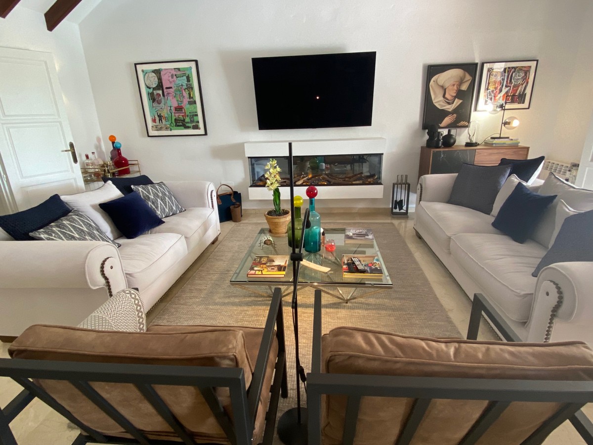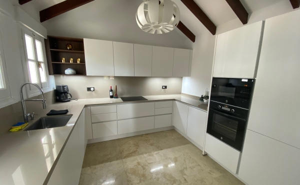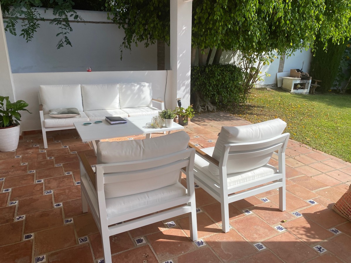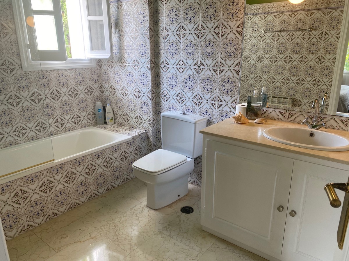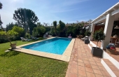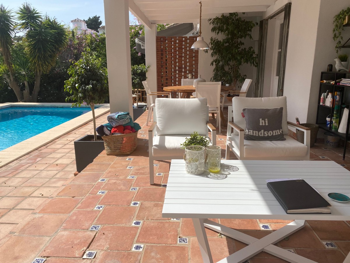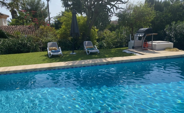 A charming villa located in a quiet cul-de-sac in El Paraiso, Estepona within walking distance to shops, restaurants, bars and the beach. The property was renovated in 2021 and consists of one floor, there is a spacious living/dining area with high beamed ceilings, fireplace and direct access out to the terrace; a modern fully fitted kitchen; 4 bedrooms and 3 bathrooms (two of the bedrooms are en-suite and the master bedroom has a dressing area). Outside the large garden is laid to lawn and surrounded by trees and shrubs providing plenty of privacy, there is a covered terrace for dining al fresco and a private pool measuring 9 x 4.5 meters. This villa also comes with the added bonus of 35 m² garage with parking space for 2 cars.