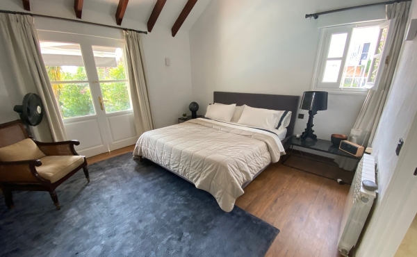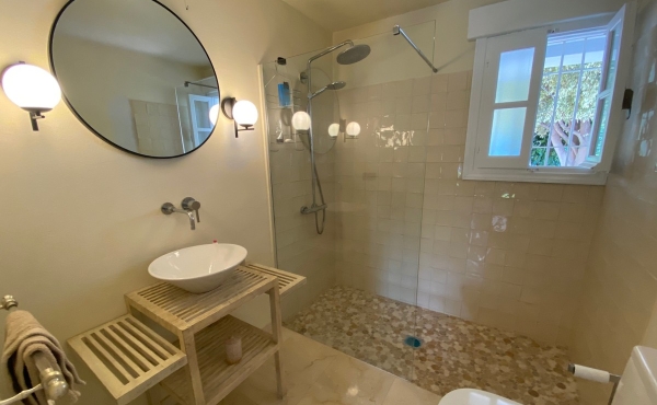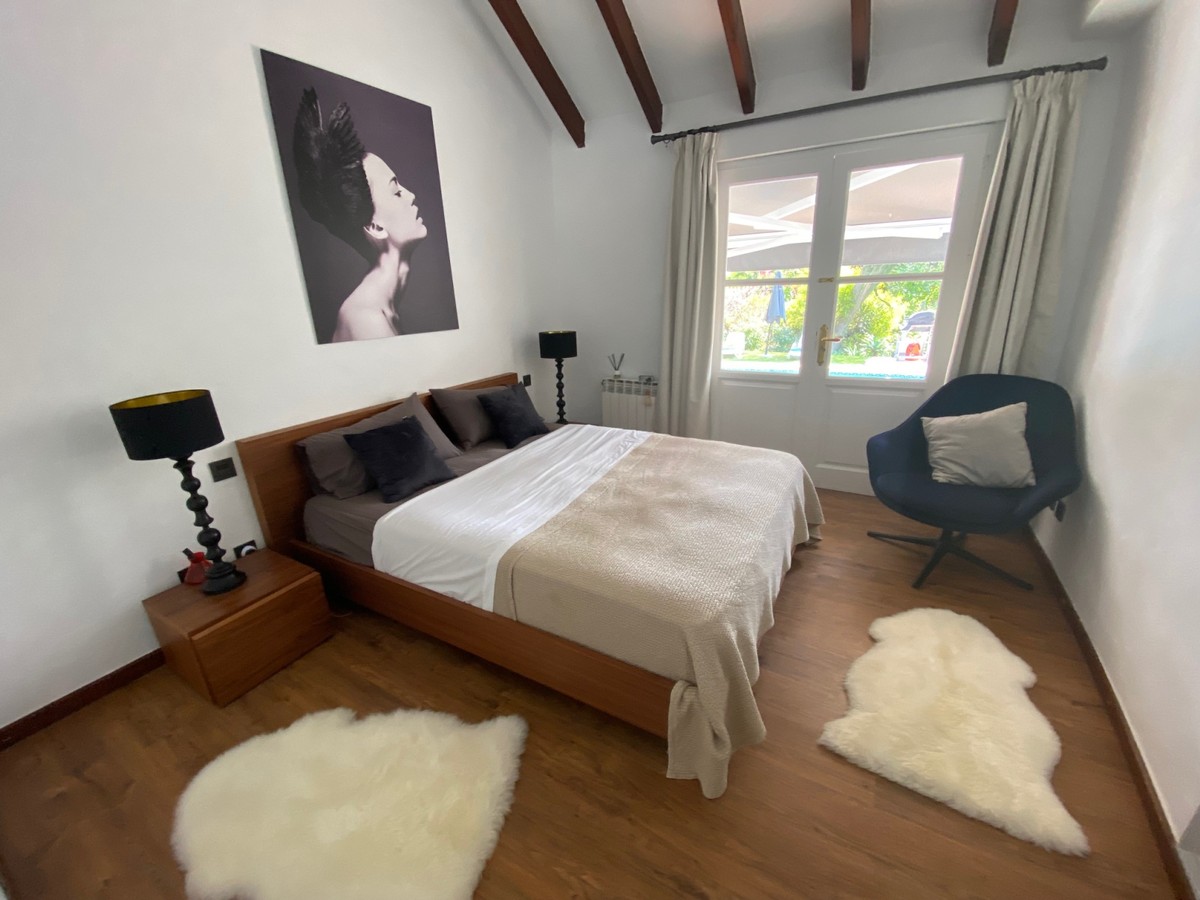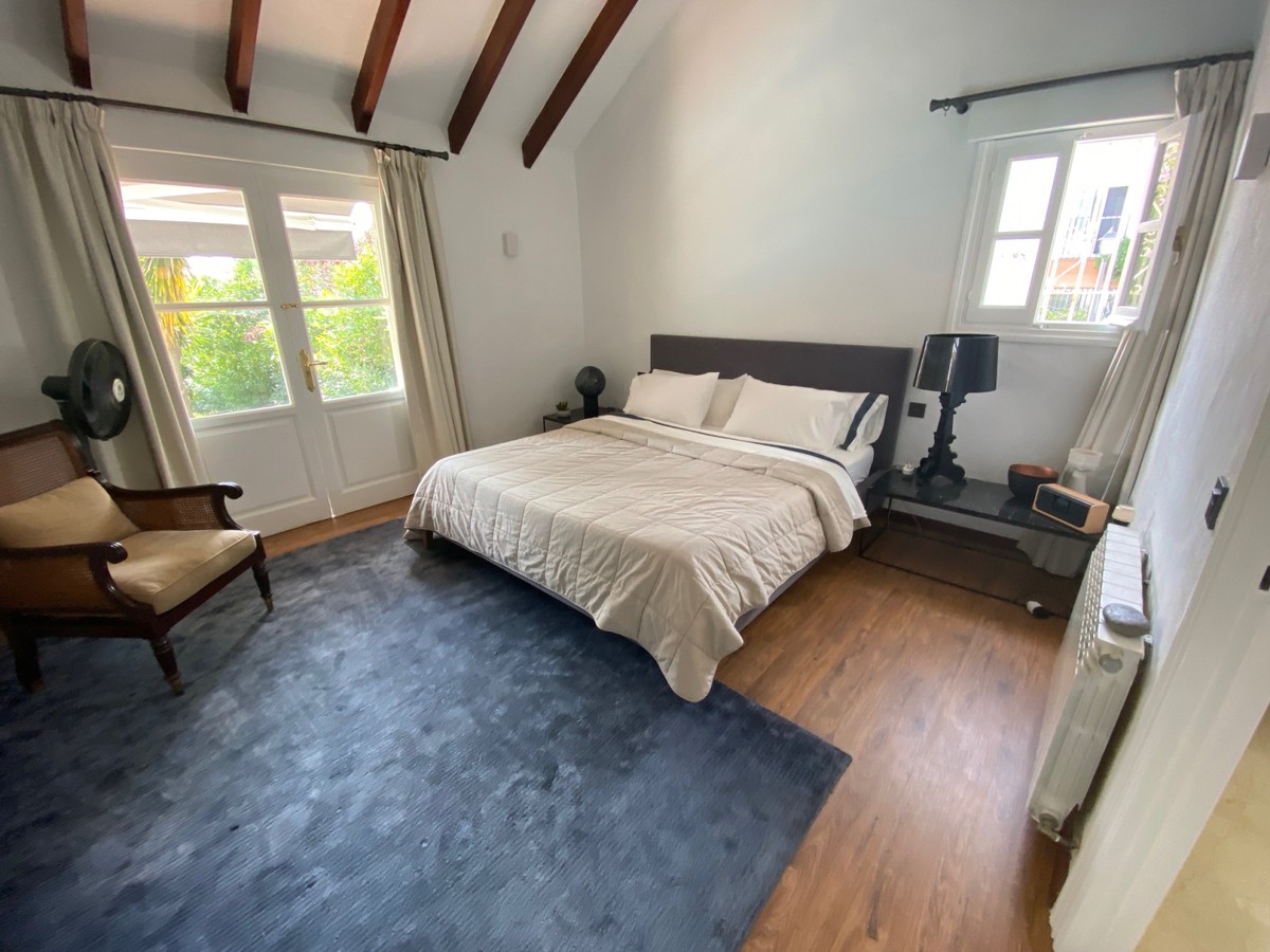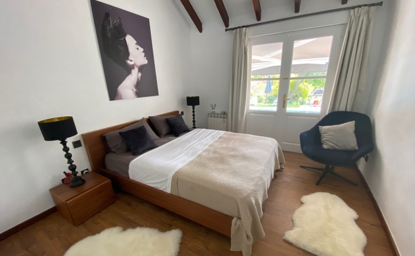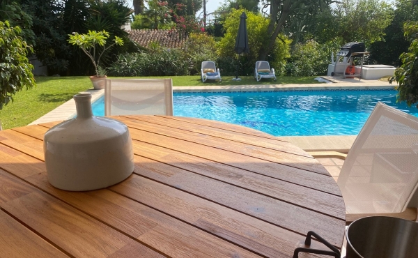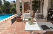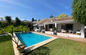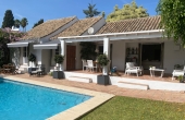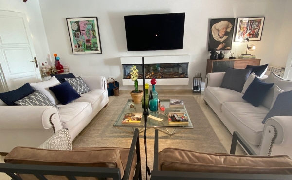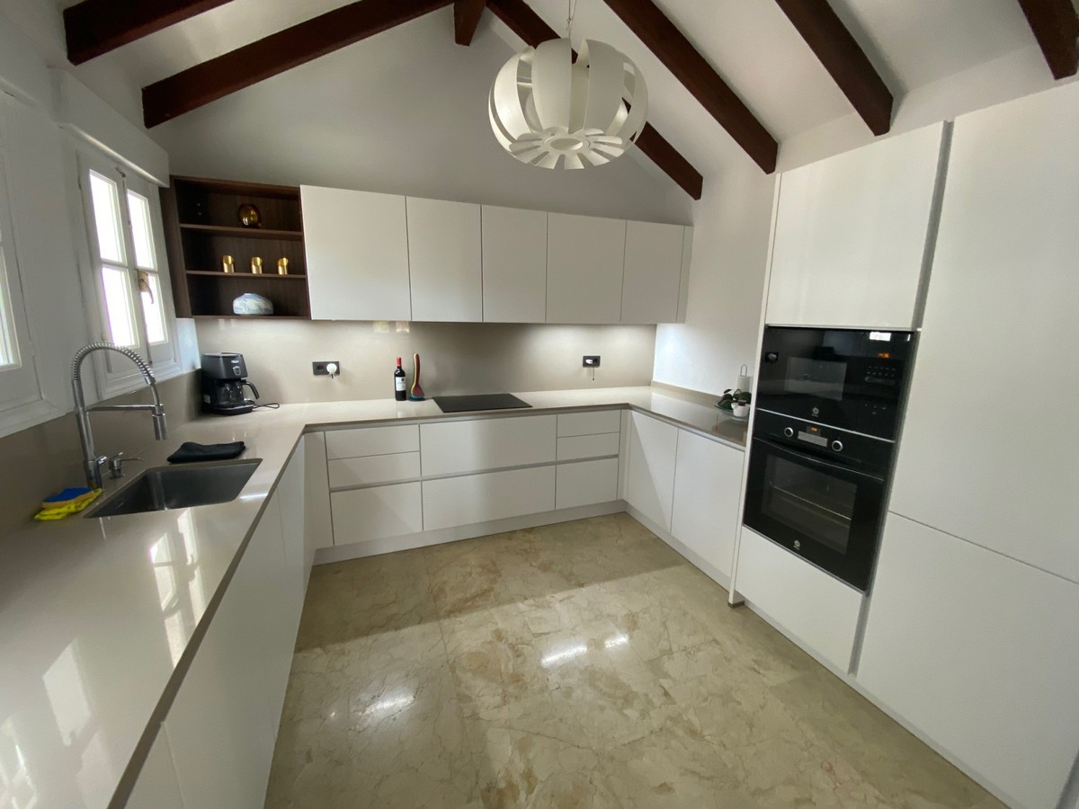 A charming villa located in a quiet cul-de-sac in El Paraiso, Estepona within walking distance to shops, restaurants, bars and the beach. The property was renovated in 2021 and consists of one floor, there is a spacious living/dining area with high beamed ceilings, fireplace and direct access out to the terrace; a modern fully fitted kitchen; 4 bedrooms and 3 bathrooms (two of the bedrooms are en-suite and the master bedroom has a dressing area). Outside the large garden is laid to lawn and surrounded by trees and shrubs providing plenty of privacy, there is a covered terrace for dining al fresco and a private pool measuring 9 x 4.5 meters. This villa also comes with the added bonus of 35 m² garage with parking space for 2 cars.
