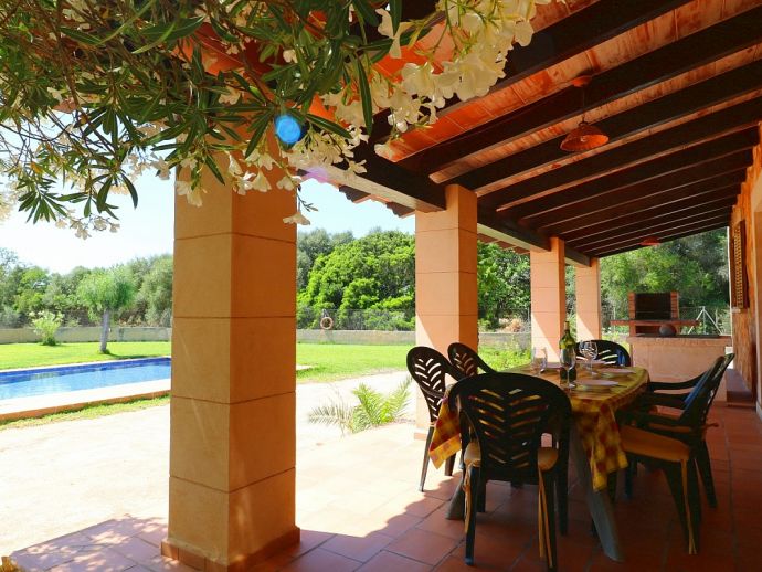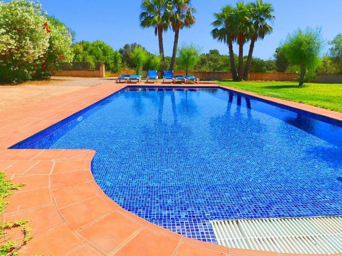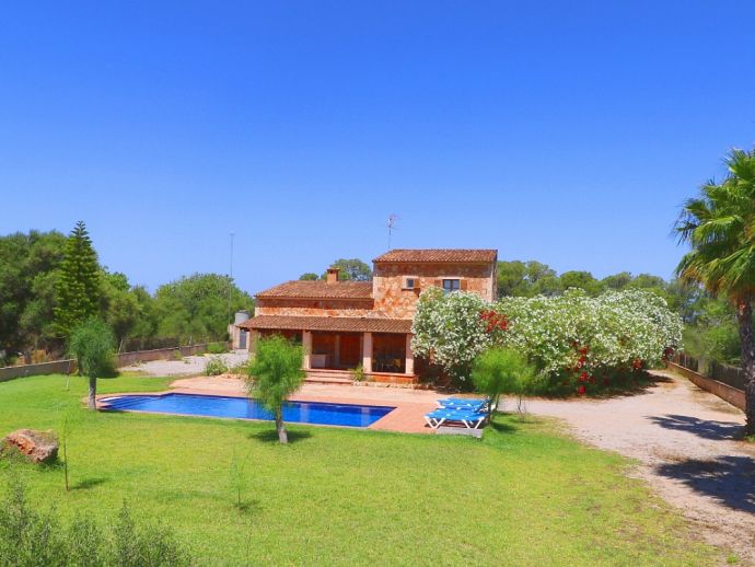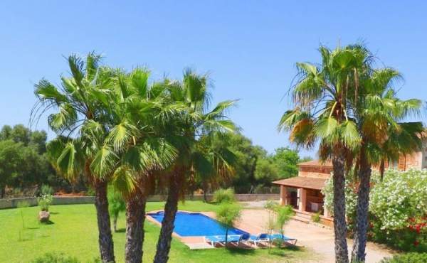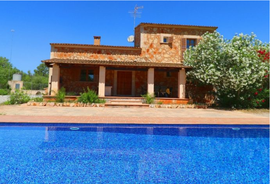 Spacious countryhouse built in traditional mallorcan style, fully air conditioned. It consists of two floors, open plan kitchen, both gas and ceramic hob, utility room. Living /dinning room with big chimney. Three double bedrooms, two bathrooms (one is en-suite). Green garden with private pool. This property has a tourist license.