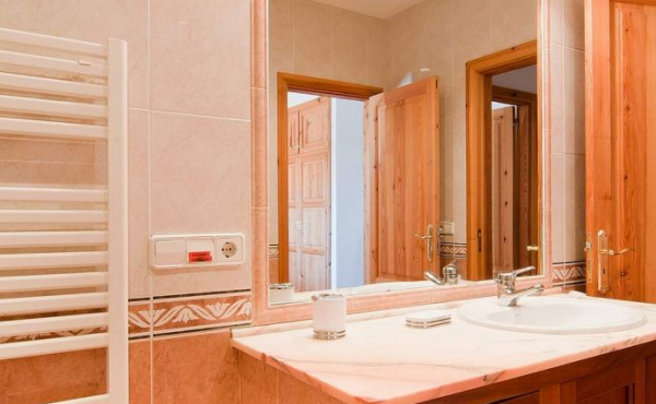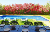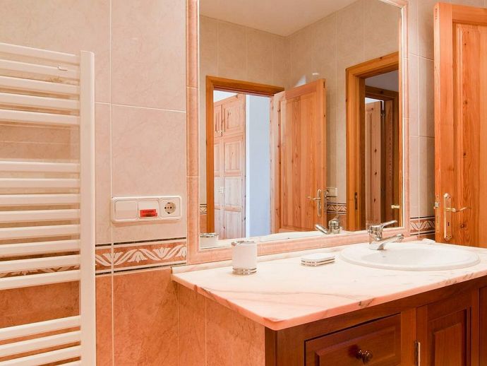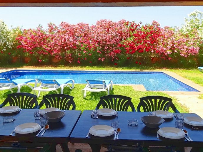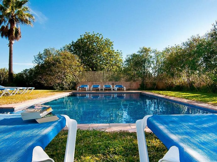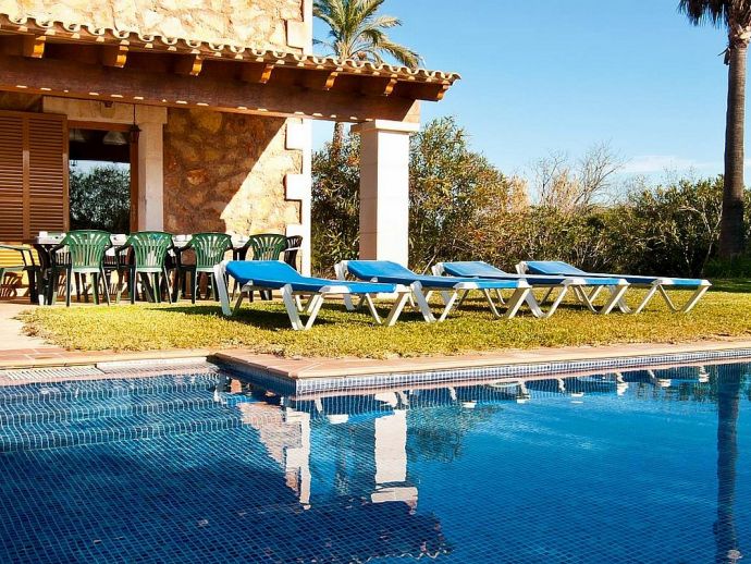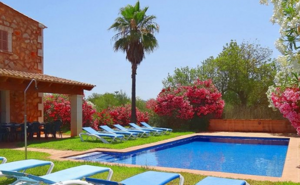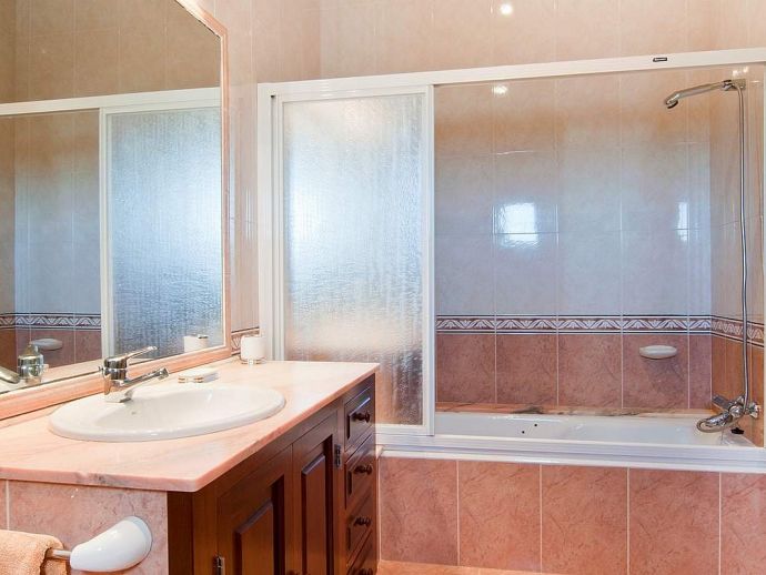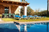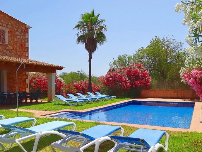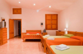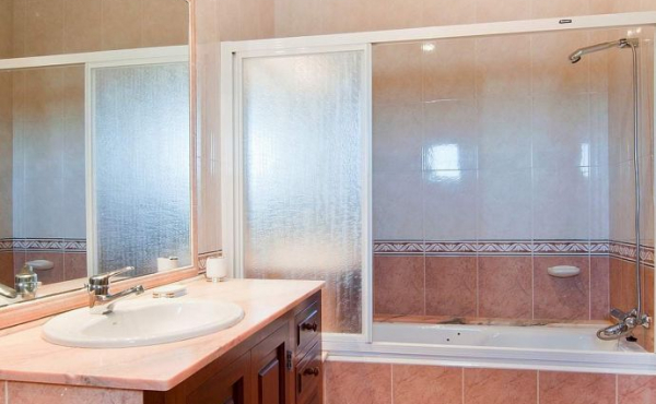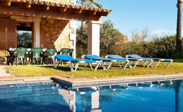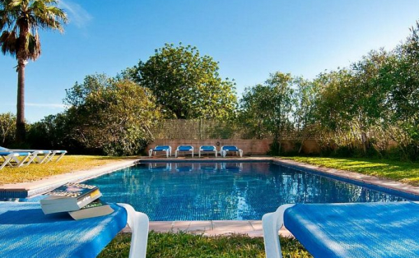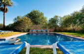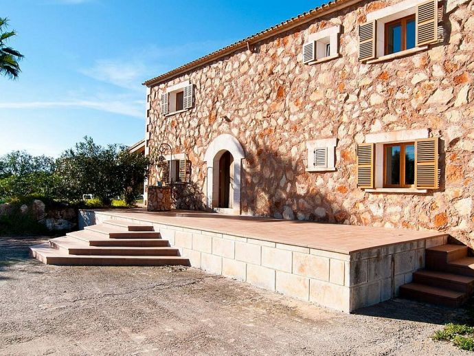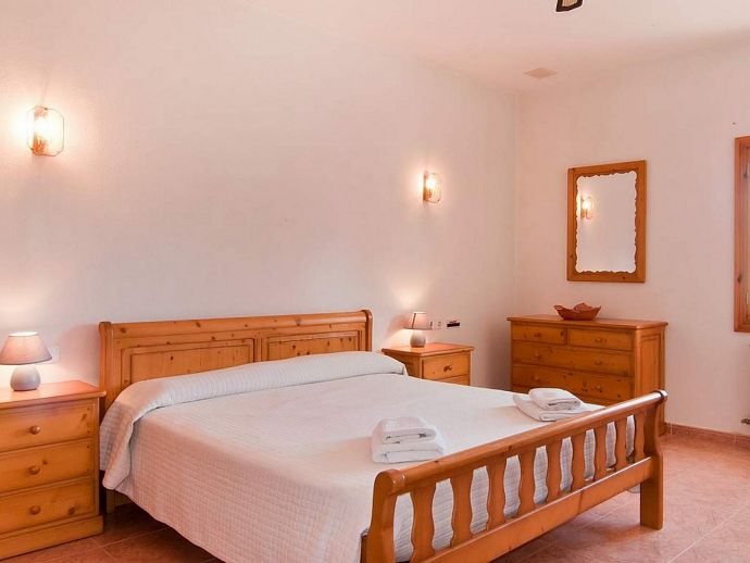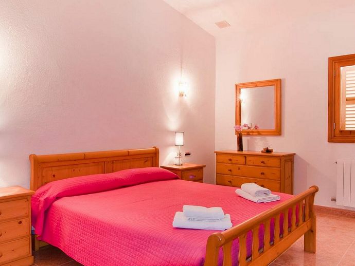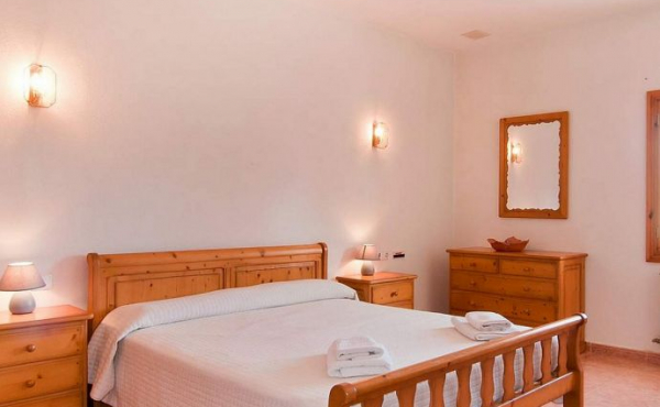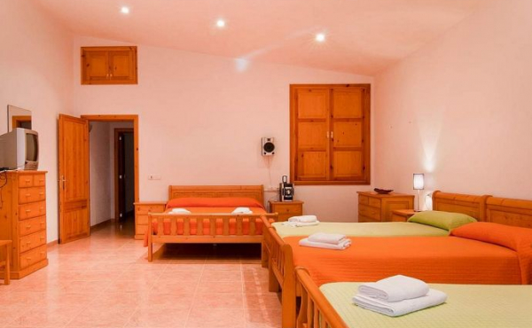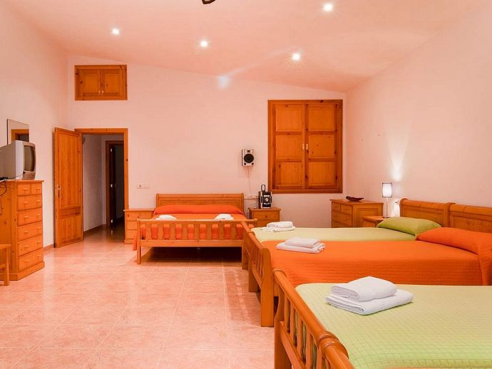 Comfortable country house with air conditioning. The house has 300 sqm of living space, distributed on 2 floors. On the ground floor there is: an entrance hall, kitchen- dining-room with a big chimney, one double room with king size bed and a bathroom en-suite; there is a direct access to the outside (terrace and pool). On the first floor there is a large bedroom with 1 double and 4 beds, another double room with a king-size bed and a second bathroom. The house is located in an area of 21,000 sqm, surrounded by almond and carob trees, in a quiet location with clear views and absolute privacy. This property has a tourist license.