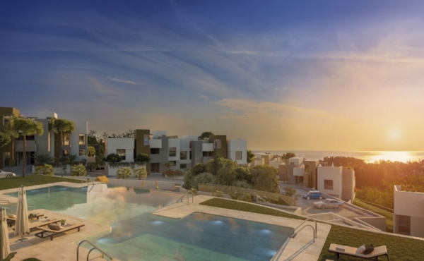 The Penthouse is located on a new gated residential complex of seventy-two, 2, 3 and 4 bedroom apartments with covered parking, communal landscaped gardens, outdoor and indoor swimming pools, a fitness room and impressive views across the golf course to the sea. Built with innovative, original state-of-the-art design with a continued commitment to sustainability and low energy consumption the development has a south-southwest orientation that maximises the use of natural sunlight. Created using only carefully selected high quality materials these spacious homes with well-appointed rooms have stylish interiors, large format porcelain tiles, top brand kitchen appliances, elegant bathrooms and wide picture windows in the bedrooms and lounge that open to large, magnificent terraces.